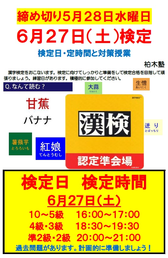 TOP > 新着情報 > 第1回 漢字検定 検定時間