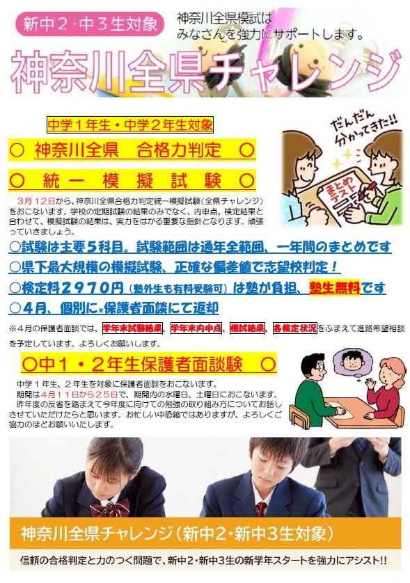 TOP > 新着情報 > キャンペーン > 全県チャレンジ!模試実施