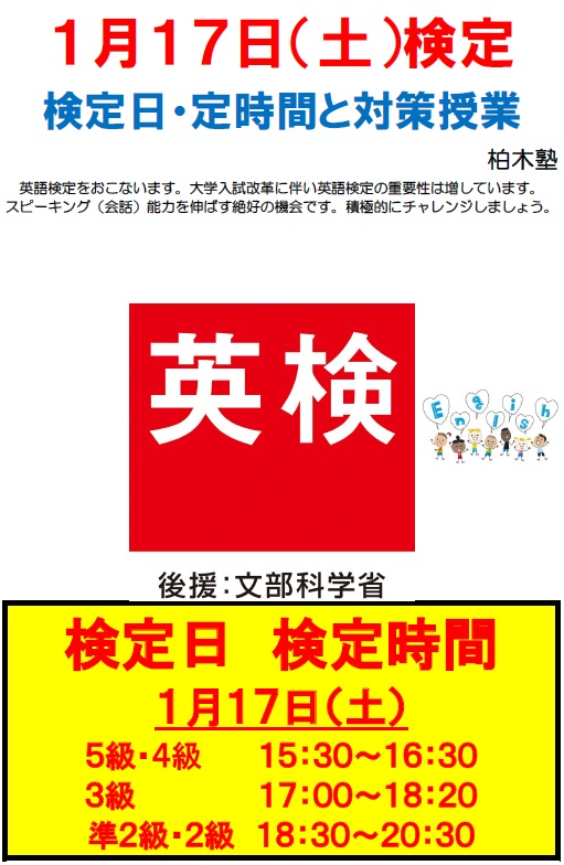 TOP > 新着情報 > お知らせ > 第3回 英語検定 検定時間割